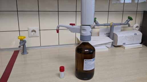 Der Sichtbezug mache von allem die wenigste Arbeit. Für die Herstellung der Lösung sei allerdings eine PTA einen ganzen Tag beschäftigt. „Das ist schon viel Aufwand, nicht nur bei der Herstellung und Abfüllung der einzelnen Fläschchen, sondern auch bei der Dokumentation.“ Die Corona-Pandemie habe zusätzliche Hürden mit sich gebracht: „Normalerweise führen wir den Sichtbezug im Notdienstzimmer durch. Damit der Weg durch die Apotheke nun jedoch wegfällt, haben wir eine Trennwand in der Offizin aufgestellt, hinter der die Einnahme stattfinden kann“, erklärt die Apothekerin. Viele der Kunden seien zwar neugierig was es mit der Wand auf sich habe, man habe sich im Team jedoch darauf geeinigt zu erklären, dass sie zur Durchführung von Blutdruckmessungen diene. „Die Neugier ist dann meist schnell gestillt.“