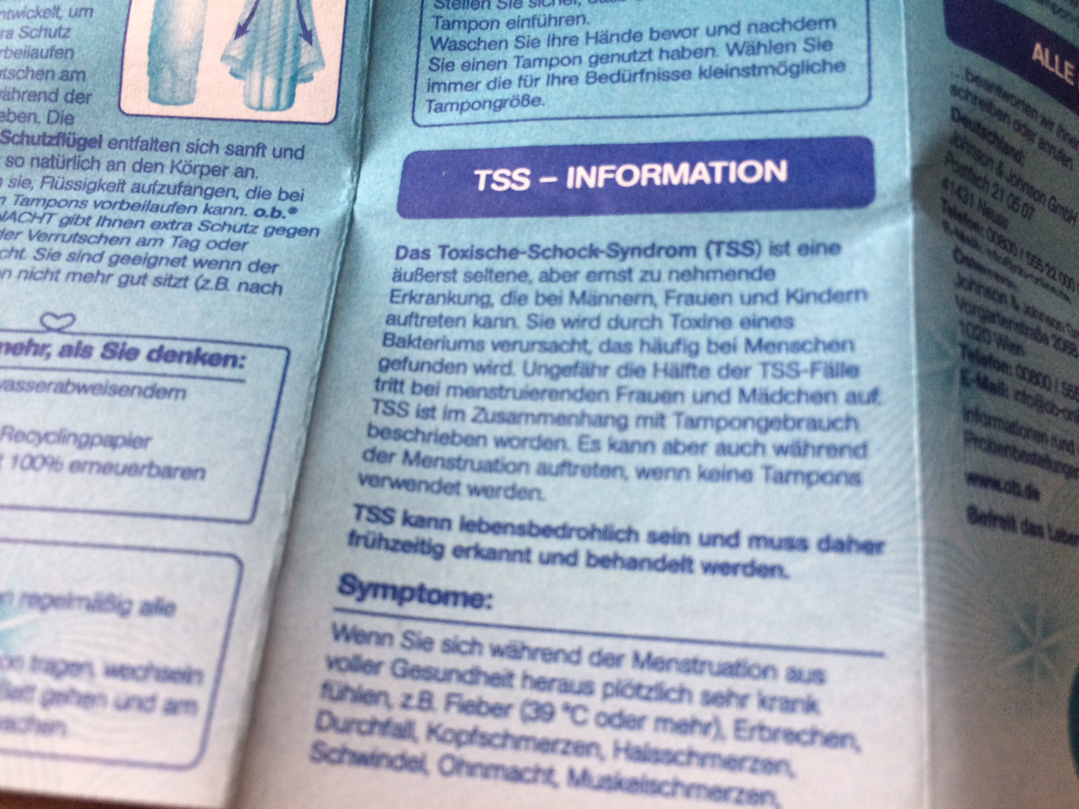 Ein weiterer Testparameter war die Produktinformation. Sowohl Tampons als auch Cups sollten einen Hinweis auf das Toxische Schocksyndrom (TSS) enthalten – fehlte dieser, wurde abgestuft. Das ernüchternde Ergebnis: Nur zwei Hersteller der Tassen wiesen auf das seltene schwerwiegende Kreislauf- und Organversagen hin, das sich durch plötzliches hohes Fieber, Erbrechen, Durchfall, Hautausschlag, Halsschmerzen, Schwindel oder Ohnmacht während der Periode bemerkbar macht. Besser sieht es bei den Tampons aus, alle Produktinformationen enthielten einen entsprechenden Hinweis. Auch sonst konnten die Tampons die Tester überzeugen. „Saugstark und sauber“, so das Fazit für die Tampons.