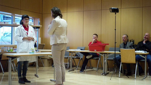 Verkaufs- und Beratungsgespräch finden in einer provisorisch eingerichteten Offizin statt. Die Finalisten erhielten für die Vorbereitung die Thematik zugesendet. In diesem Jahr stehen die ethischen Themen Gastritis und Harnwegsinfekte im Vordergrund und als OTC-Themen Verstopfung und Nagelpilz auf dem Programm.
