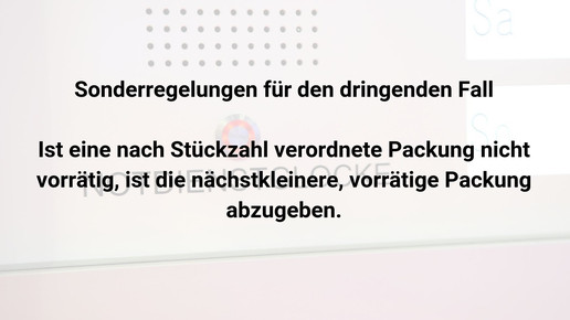 In puncto Jumbopackungen ändert sich nichts, denn diese dürfen auch weiterhin nicht zu Lasten der Kasse abgegeben werden und sind damit nicht erstattungsfähig. Nachzulesen in § 8 Absatz 2. Eine Sonderregelung gibt es für den dringenden Fall, denn dann dürfen beispielsweise bei ASS 500 mg 100 Stück auch zwei Packungen zu je 50 Tabletten abgegeben werden. Im täglichen Betrieb ist keine Abgabe möglich, da es sich um eine unbestimmte Verordnung handelt. Die Apotheke kann jedoch Rücksprache mit dem Arzt halten und eine Korrektur vornehmen und dies entsprechend auf der Verordnung dokumentieren und mit Datum und Unterschrift abzeichnen.