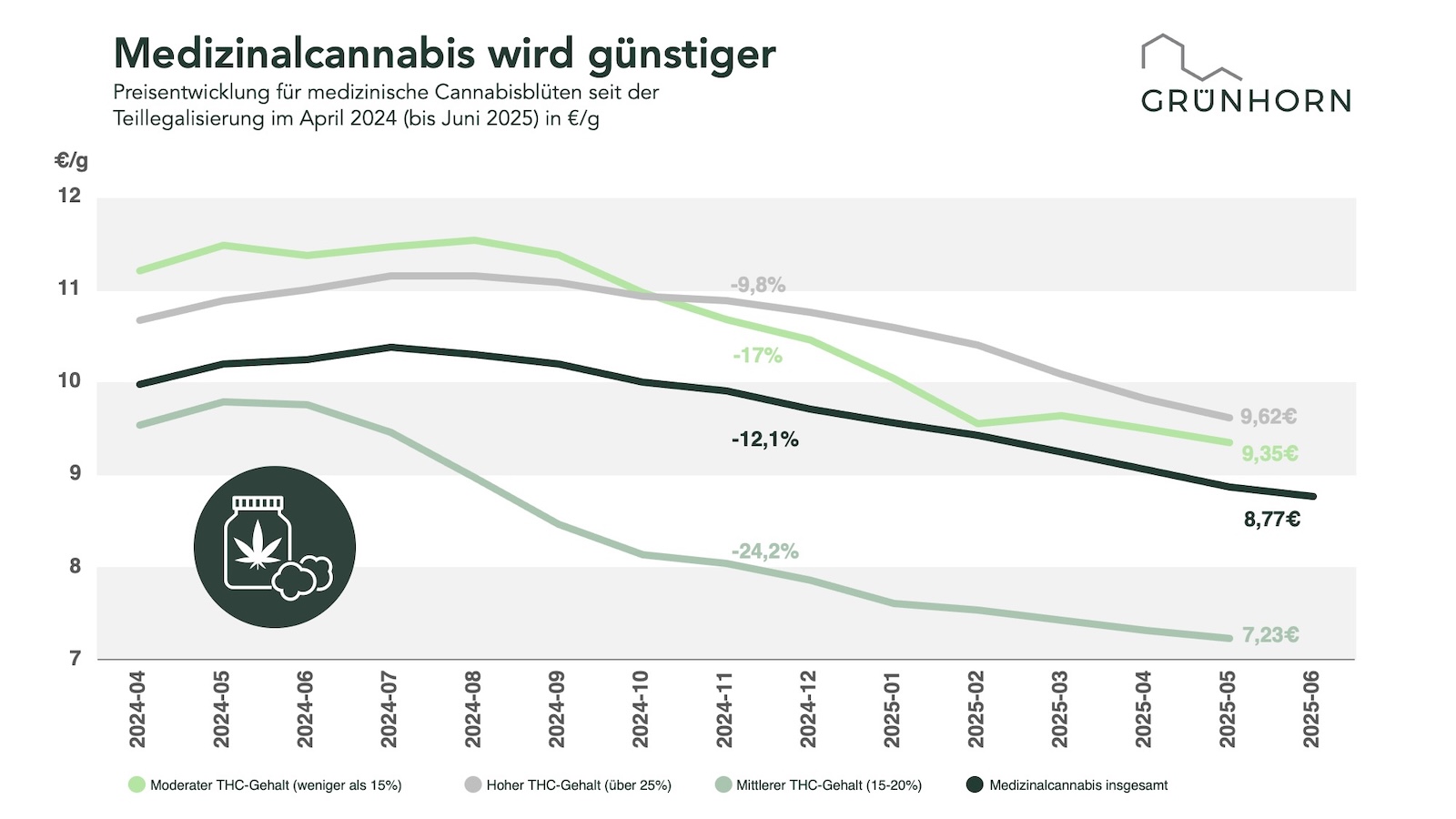 So zeigt sich laut Grünhorn ein Preisgefälle zwischen den Apotheken mit umfassender Beratung und neuen Marktteilnehmern, die stark auf Preiswettbewerb setzen. „Wir sehen, dass neue Marktteilnehmer bewusst auf aggressive Preismodelle setzen, um sich zu positionieren“, erklärt CEO Stefan Fritsch. „Das ist nachvollziehbar – aber es bringt auch Risiken mit sich: Wer langfristig unter Produktionskosten abgibt oder zu hohe Bestände aufnimmt, riskiert wirtschaftliche Instabilität.“ Denn Medizinalcannabis unterliege pharmazeutischen Standards und müsse unter besonderen Bedingungen gelagert werden. Kurzfristig nicht abgesetzte Ware könne verfallen.
