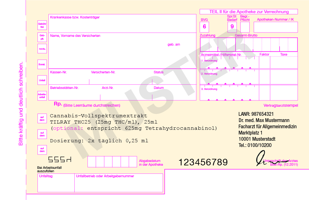 Wird vom Arzt ein sofortiger Beginn der Cannabis-Therapie angeordnet, kann dieser nur durch Ausstellen eines Privatrezeptes erfolgen. Wichtig: Cannabisblüten und Zubereitungen aus Cannabis können von jedem Arzt verordnet werden, es ist keine besondere Fachrichtung zu berücksichtigen. Lediglich Zahn- oder Tierärzte sind nicht zur Ausstellung befugt.